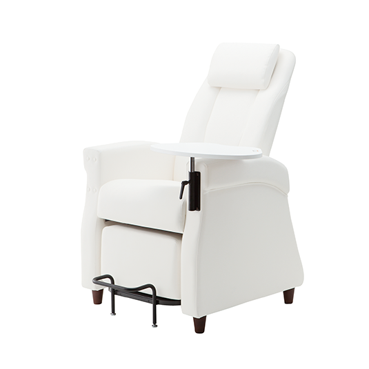 A nail chair designed to be more comfortable for both clients and technicians that enables the provision of various beauty services. Foot wagon can be stored under the chair when not in use, enhancing seating comfort, design and saving space.