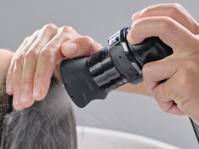 An airless stream of water wraps the entire head in warmth, creating a calming spa experience.