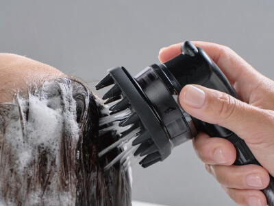 Gentle stimulation loosens the scalp and envelops it in warmth.