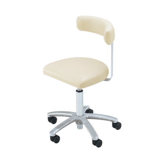 A large seat with low-resistance cushion and lumbar support enables practitioners to work for long periods.
